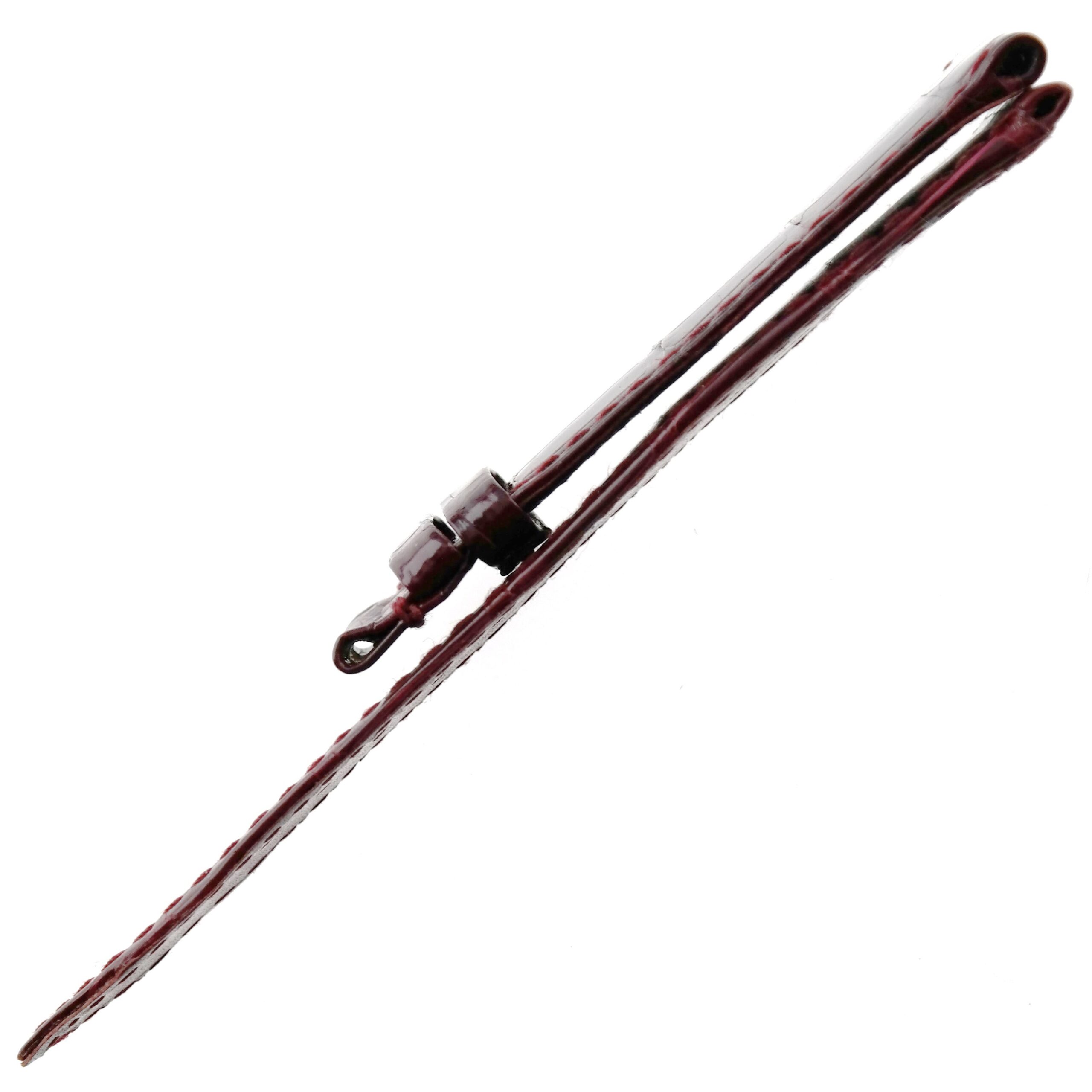 Burgundy lacquered alligator skin on leather, bordeaux stitching.
