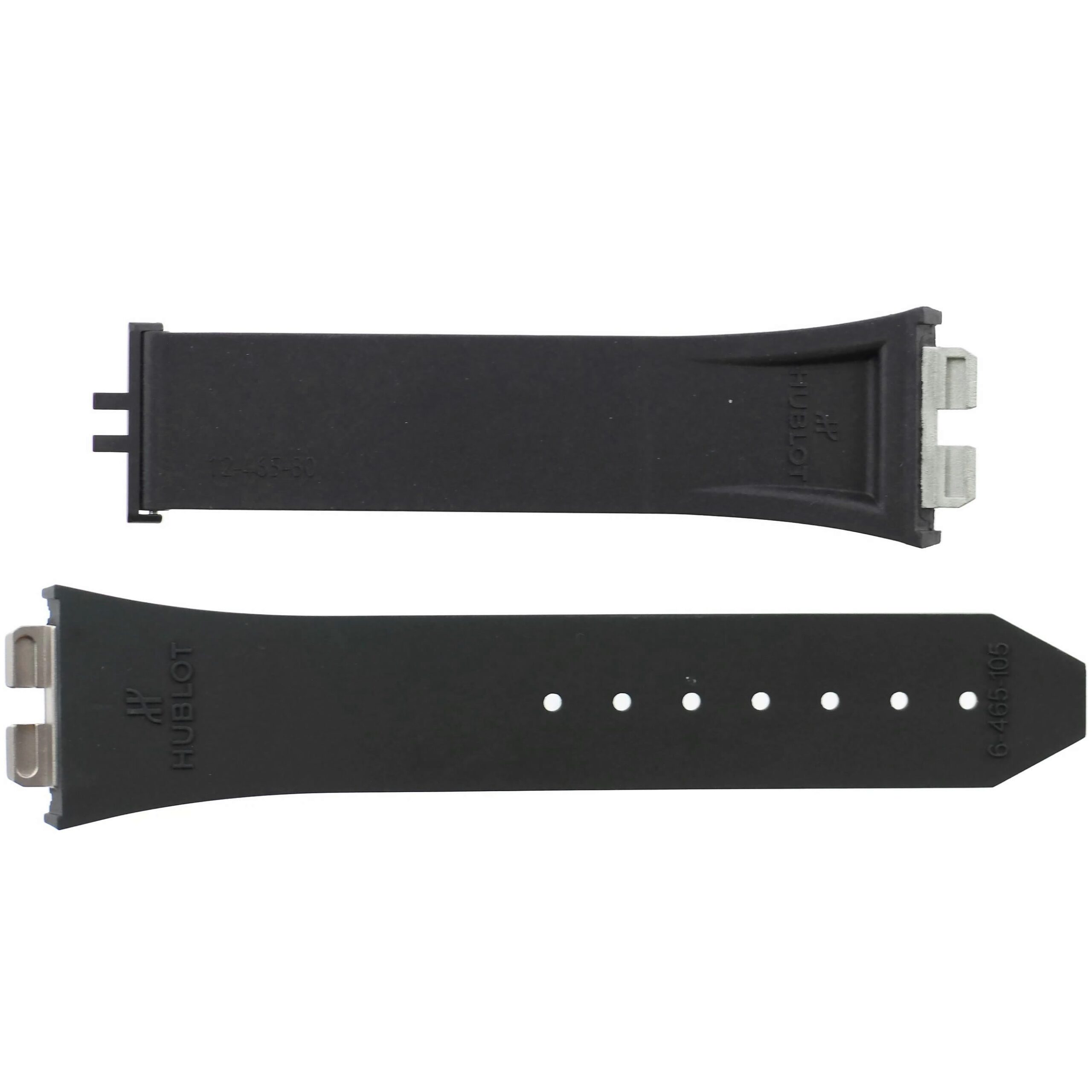 The strap is marked with the Hublot logo, HUBLOT | 6-465-105 | 12-465-80.