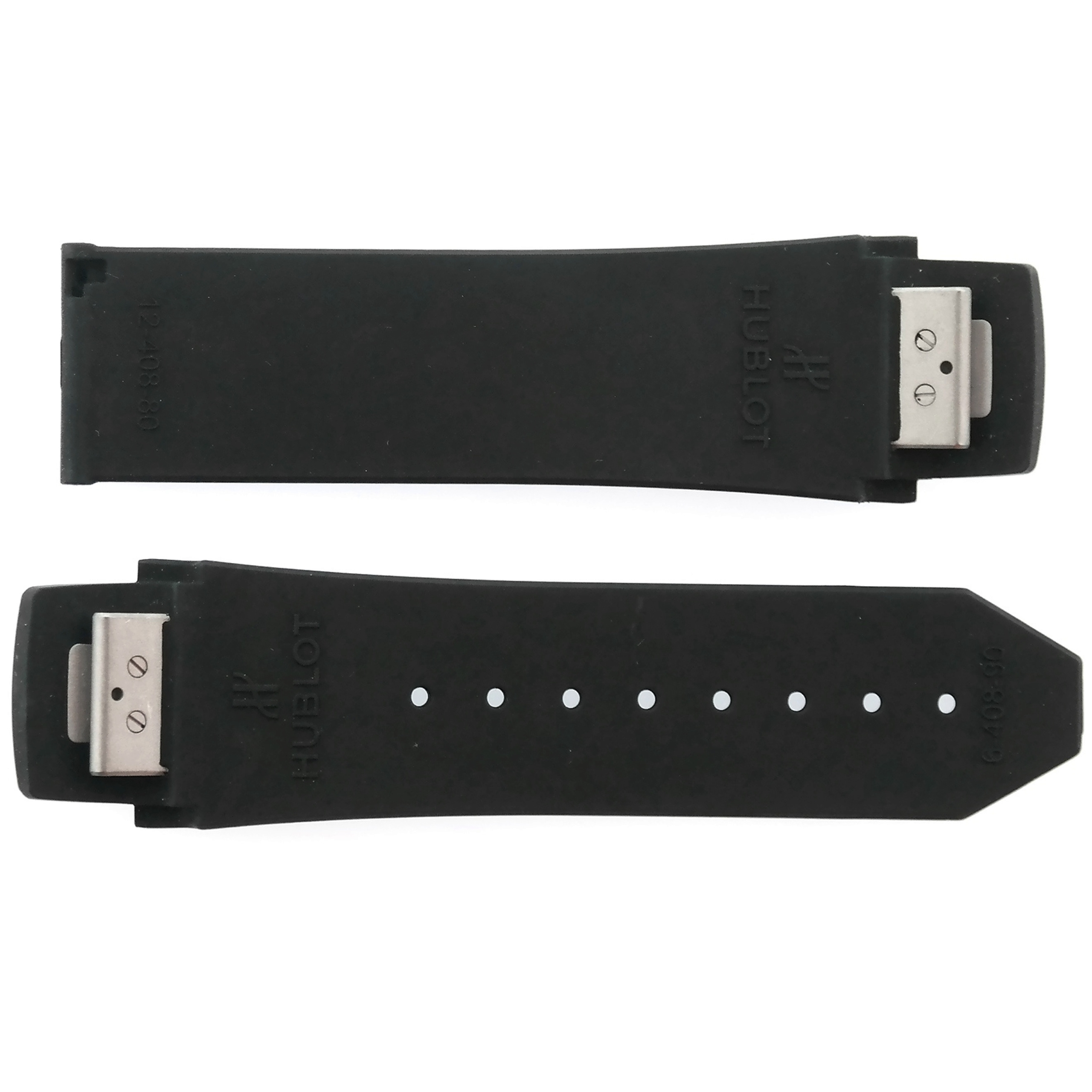 The strap is marked with the Hublot logo, HUBLOT | 6-408-90 | 12-408-80.