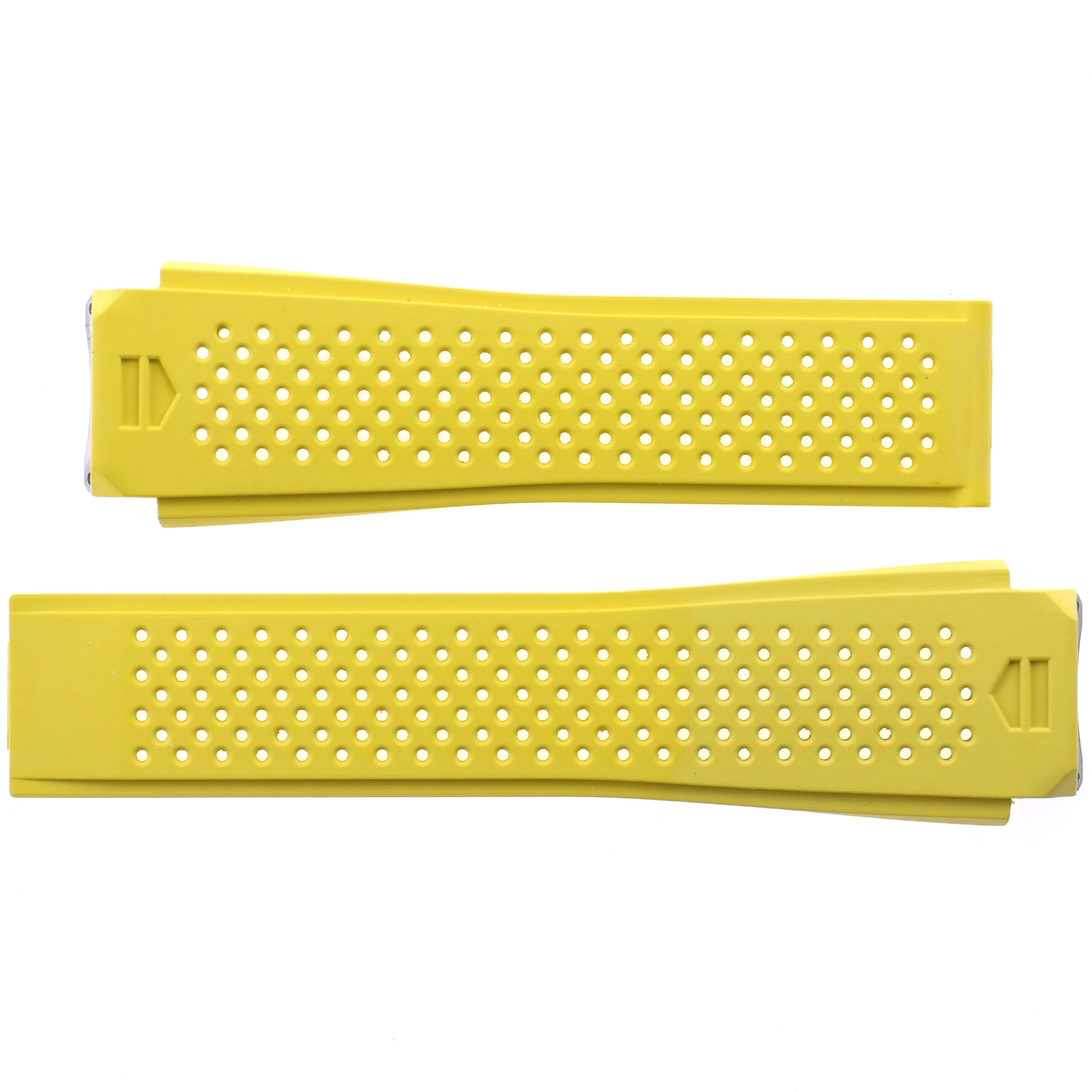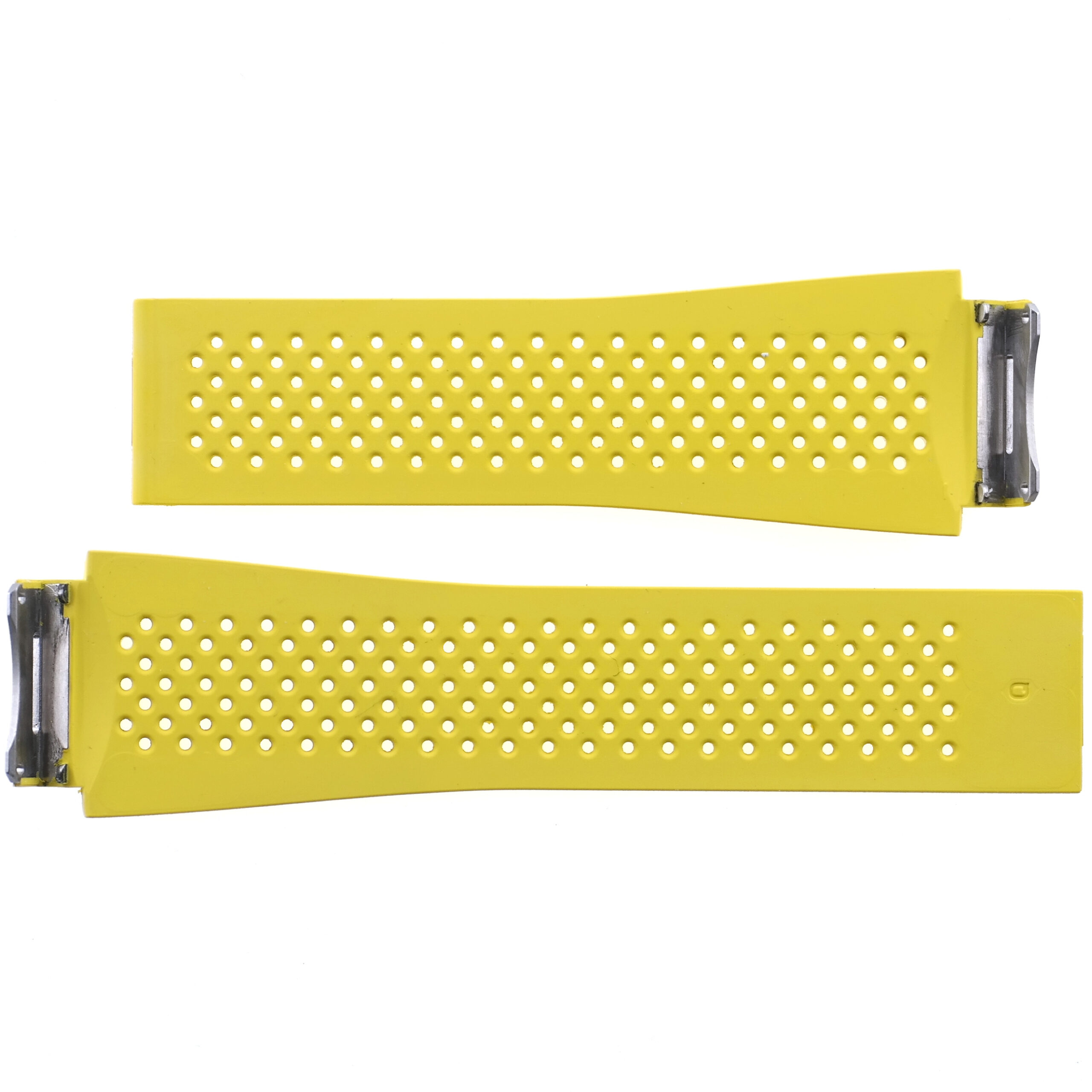Yellow rubber strap, with patterned perforations, with its distinctive TAG Heuer logo.