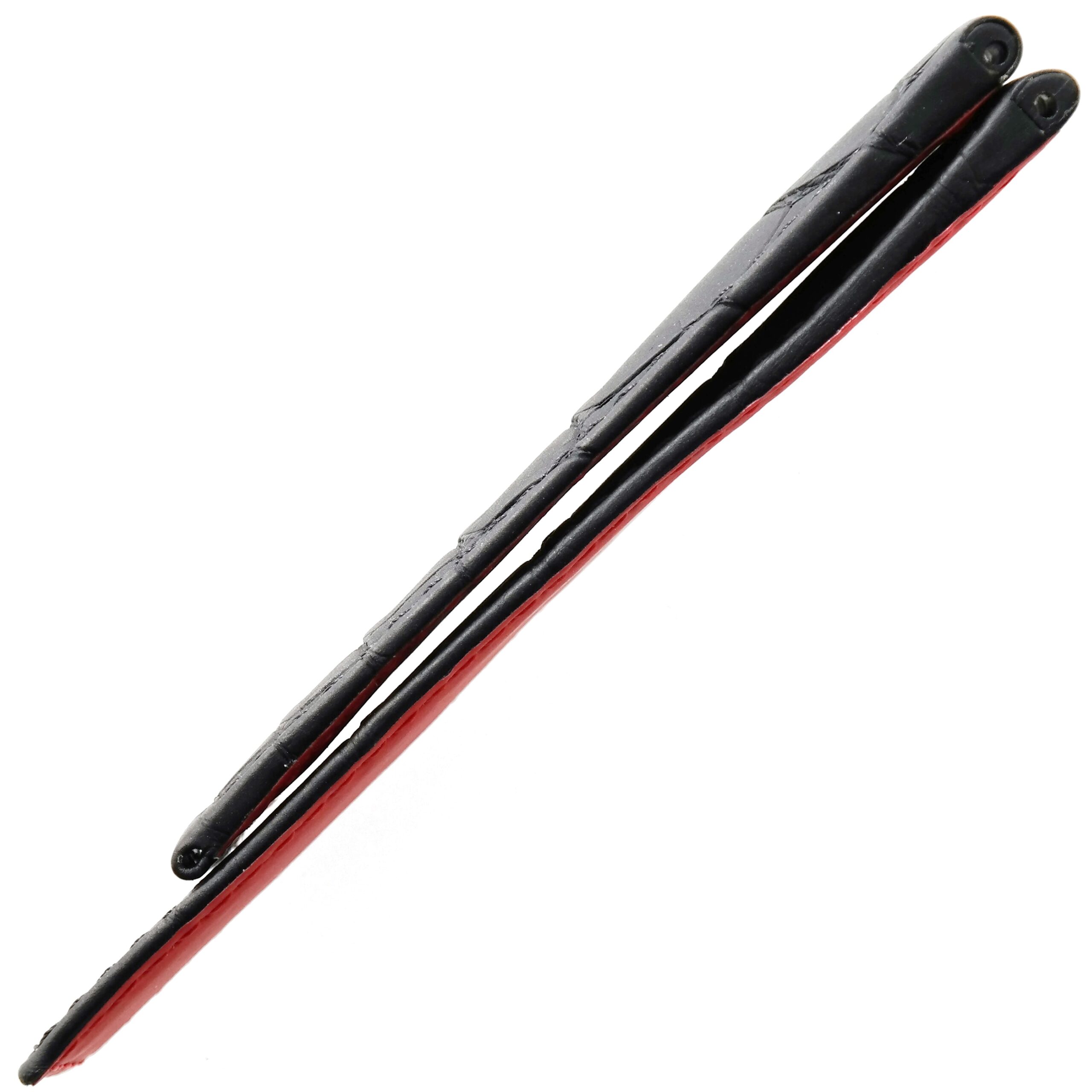Top-quality matte black alligator skin on red leather, black stitching.