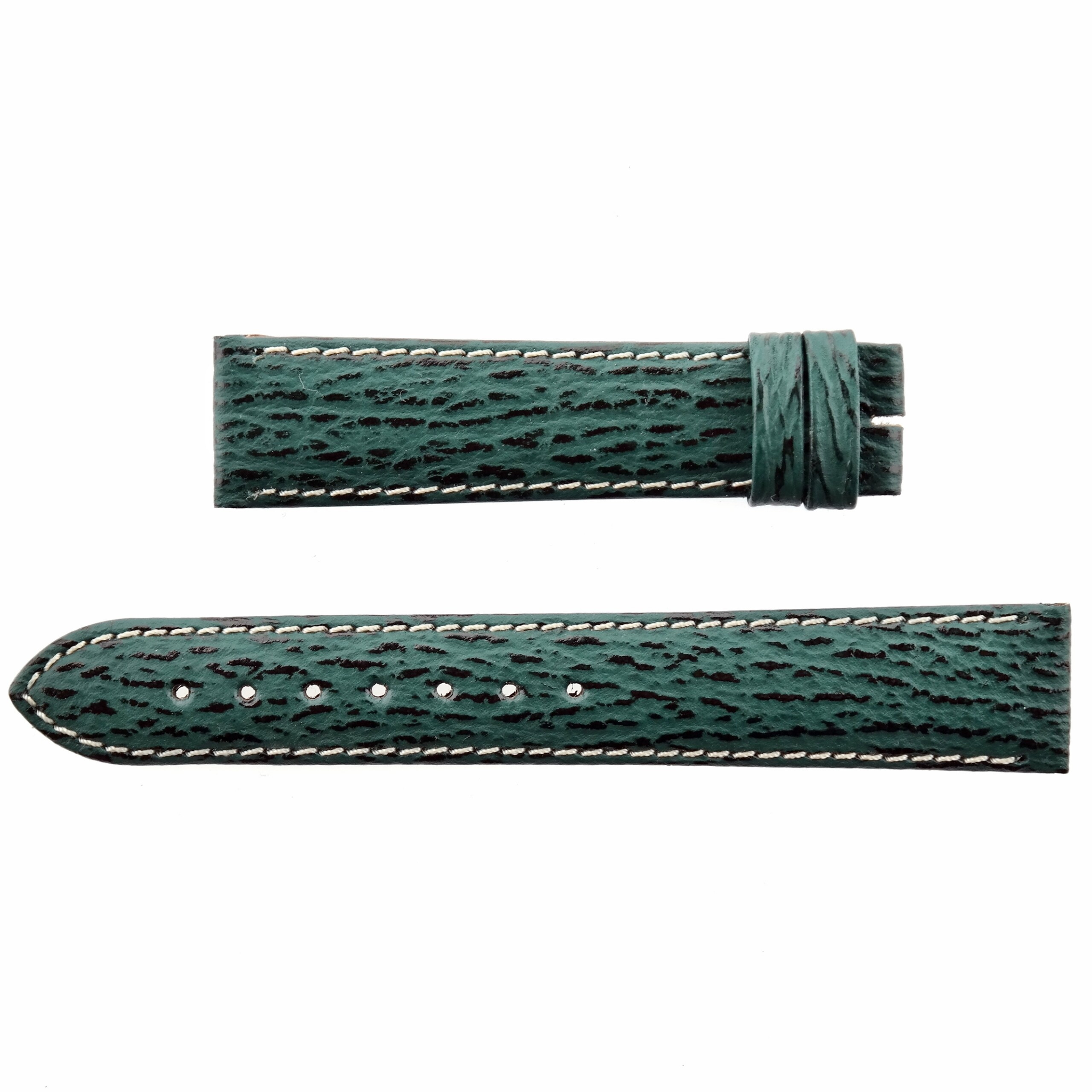 ZENITH original Swiss watch strap in green shark skin on leather.