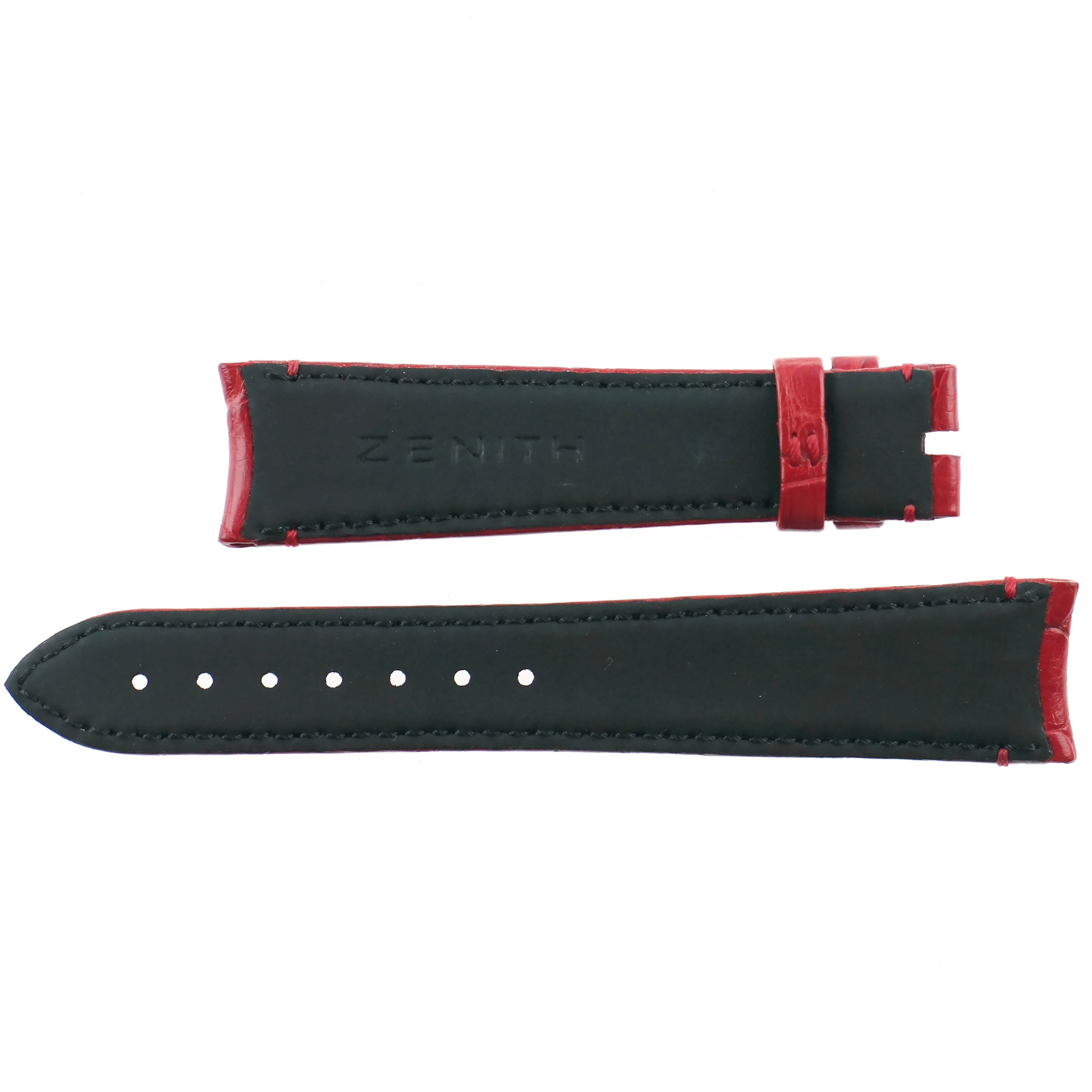 ZENITH OEM (original) Swiss Made watch strap in red genuine alligator skin on black rubberized leather.