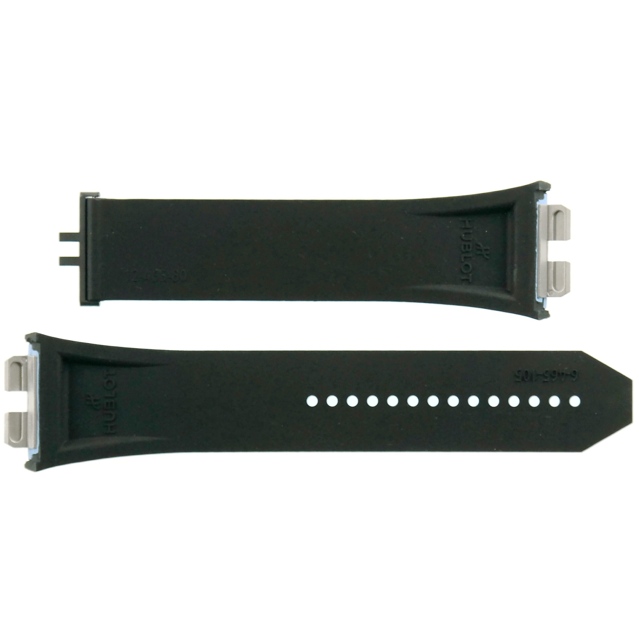 The strap is marked with the Hublot logo, HUBLOT | 6-465-105 | 12-465-80.