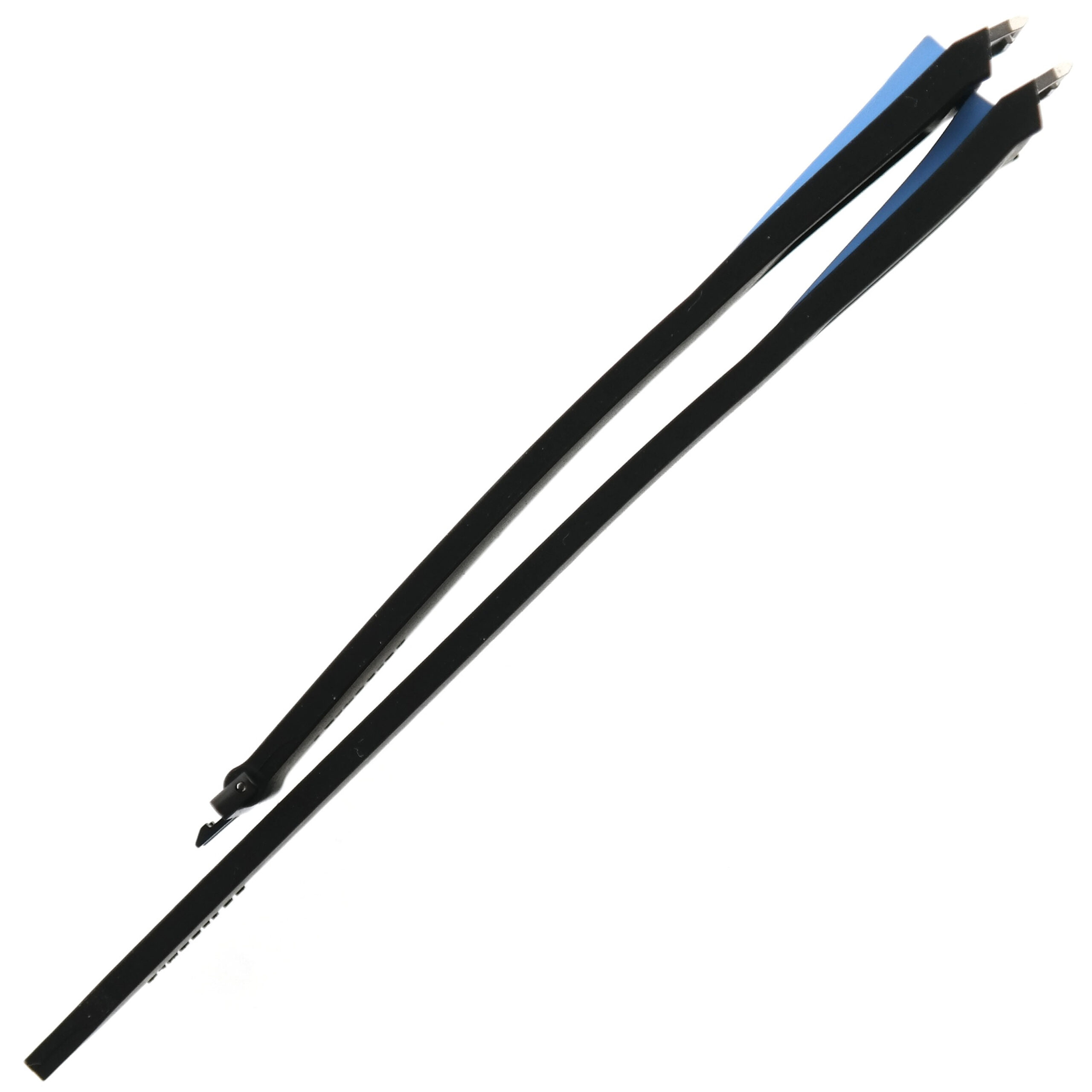 Black with light blue lined rubber, solid titanium insert assembly, quick-release buckle connector.