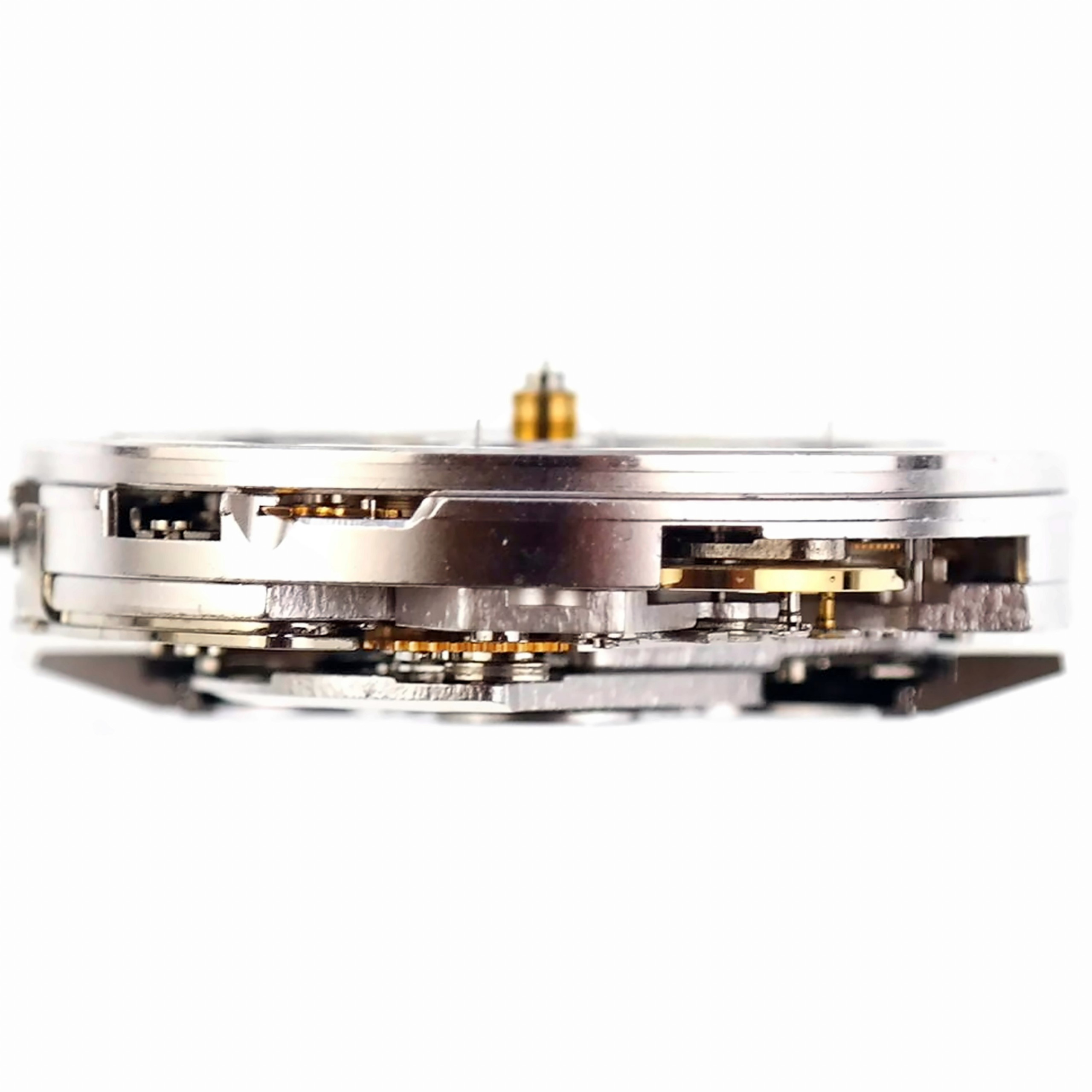 Between the 861/1861 and the newer ETA/Dubois-Depraz movements, Omega used the 7750 Valjoux for a while. This is the one of the most popular chronograph movement the Swiss watch industry has on offer, with a unidirectional winder and a click spring construction, and you can find it in many other Swiss watches.