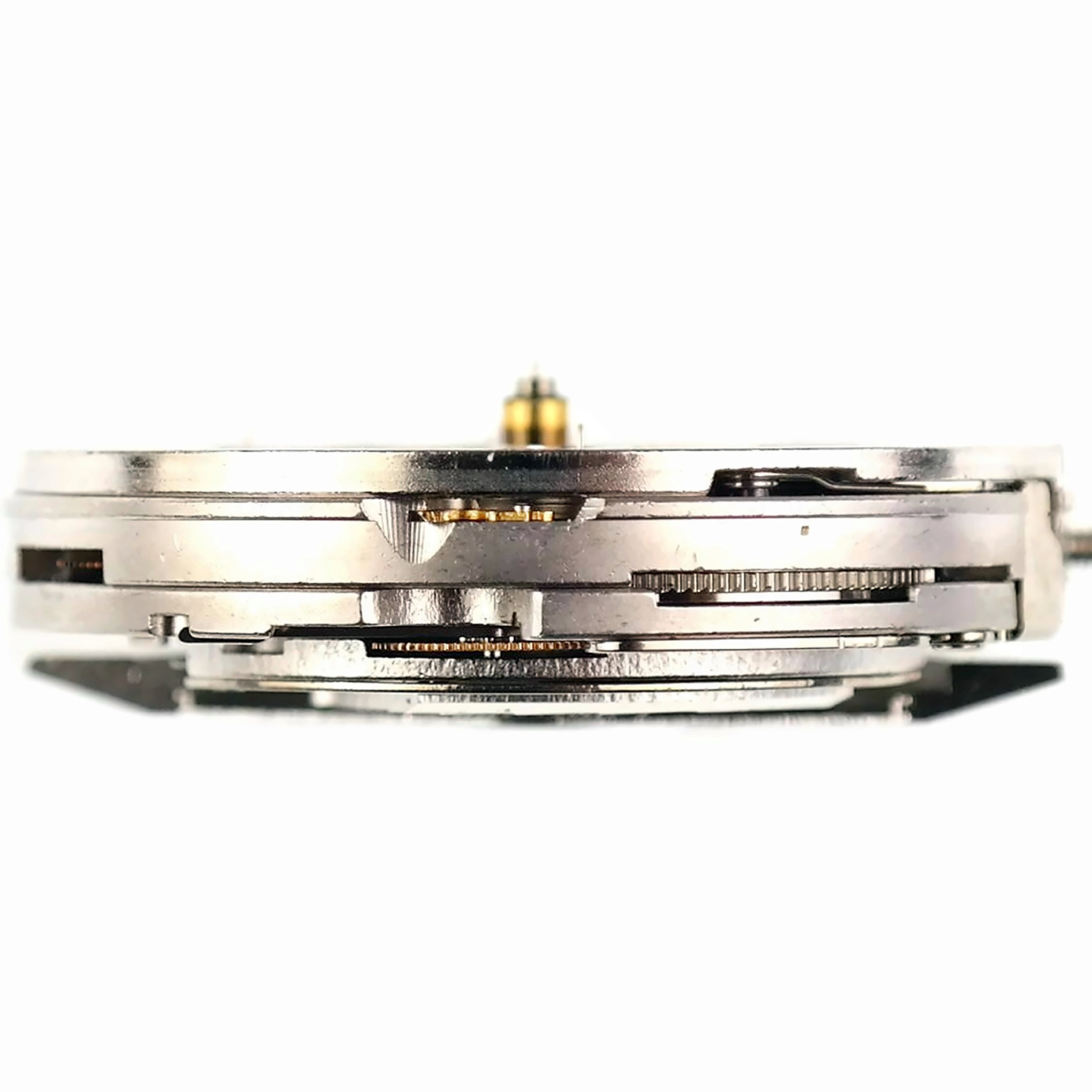 Between the 861/1861 and the newer ETA/Dubois-Depraz movements, Omega used the 7750 Valjoux for a while. This is the one of the most popular chronograph movement the Swiss watch industry has on offer, with a unidirectional winder and a click spring construction, and you can find it in many other Swiss watches.