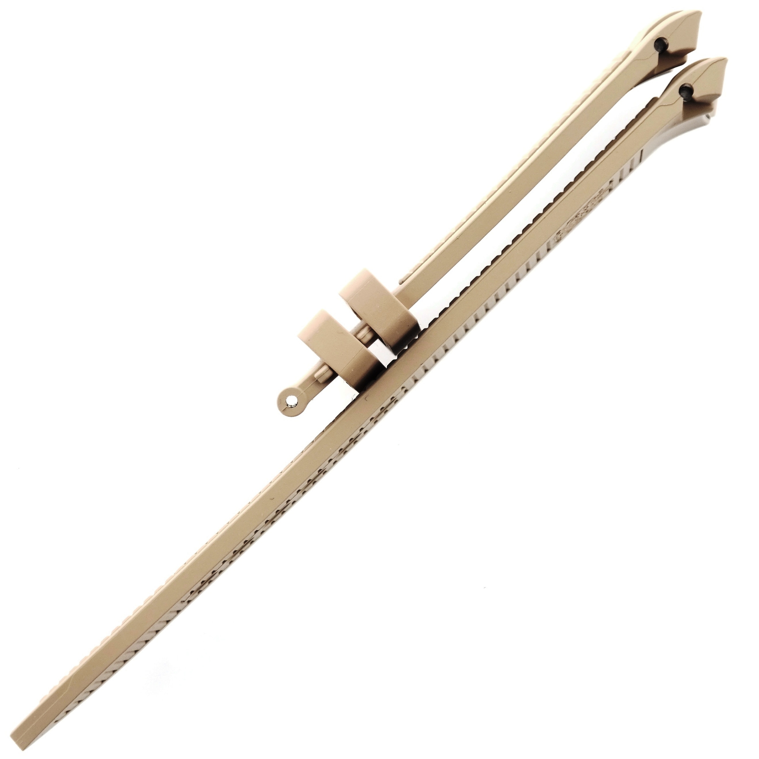 Beige vulcanized rubber, curved ends with plastic inserts.