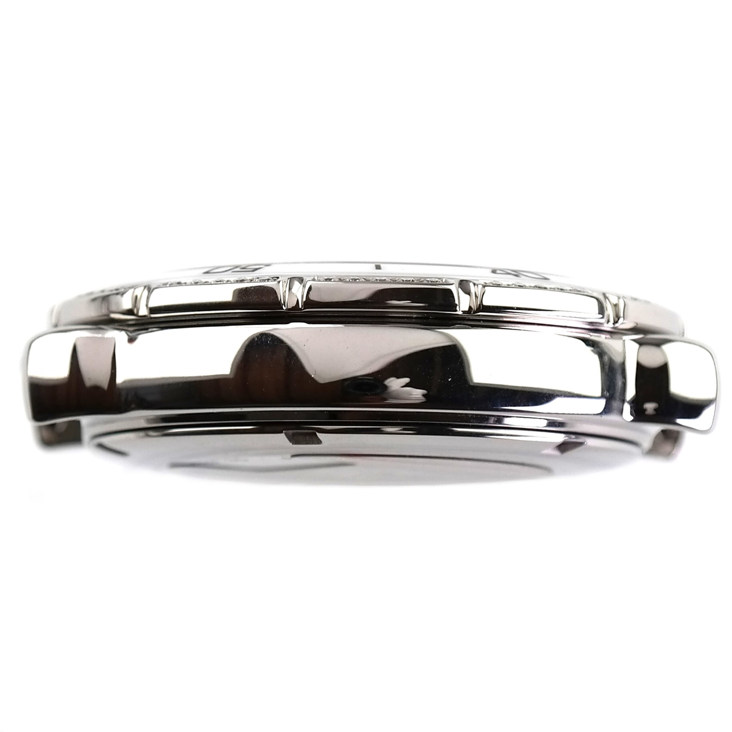 White ceramic bezel with 60 sparkling Wesselton diamonds.