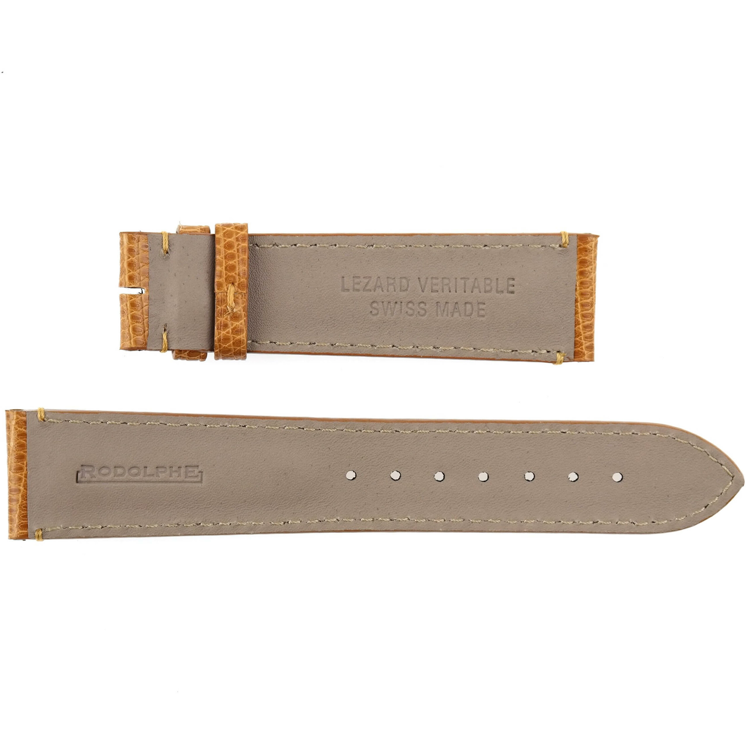 Short piece is ca. 75 mm, long piece is ca. 115 mm. The strap is marked RODOLPHE | LEZARD VERITABLE | SWISS MADE.