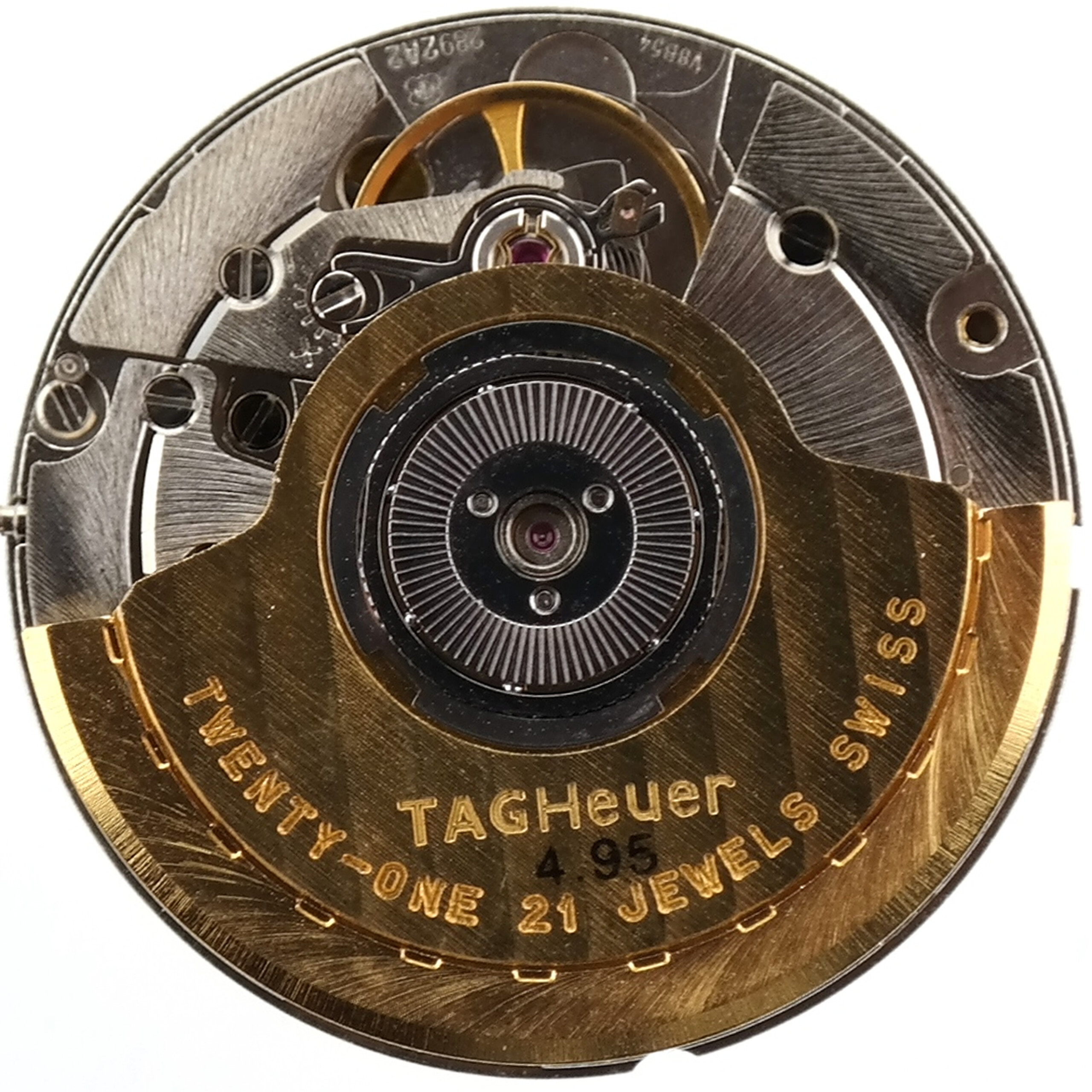 Oscillating mass: “Côtes de Genève”, engraved “TAG Heuer4.95TWENTY-ONE 21 JEWELSSwiss“.